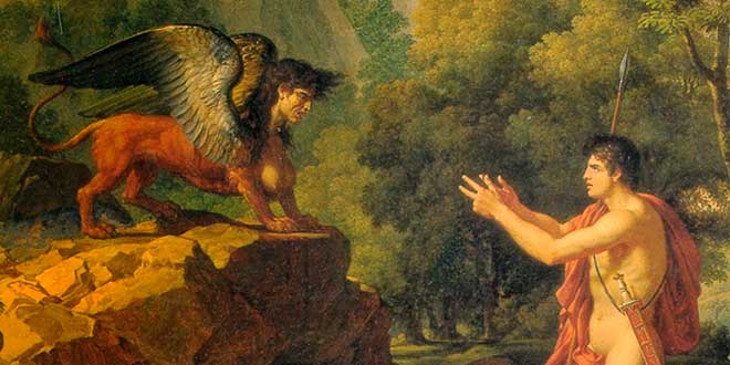 Por último, uno de los símbolos más profundos y ancestrales con el que el ser humano tomó contacto, es el de la esfinge. Helena Blavatsky mencionaba que todos los egiptólogos están de acuerdo en declarar la esfinge y su templo como los más antiguos monumentos religiosos del mundo, o por lo menos, de Egipto. Utilizada por griegos antiguos también, este animal mitológico tenía cabeza de mujer, cuerpo de toro, garras de león, una cola armada con un dardo agudo y alas de águila. Quizás, así como complejos de desentrañar eran sus enigmas, así también sea la acotada posibilidad de hablar sobre lo trascendente a través de las palabras. Pero en el proceso de la evolución humana -que probablemente represente este antiguo símbolo-, superada la etapa animal y alcanzada la humana, el proceso evolutivo continuaba al desplegar las alas.