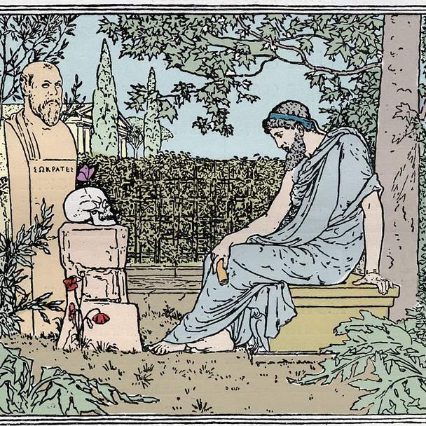Representación de Platón reflexionando (arriba). Representaciones de Platón con alas de mariposa del siglo XVIII (abajo)