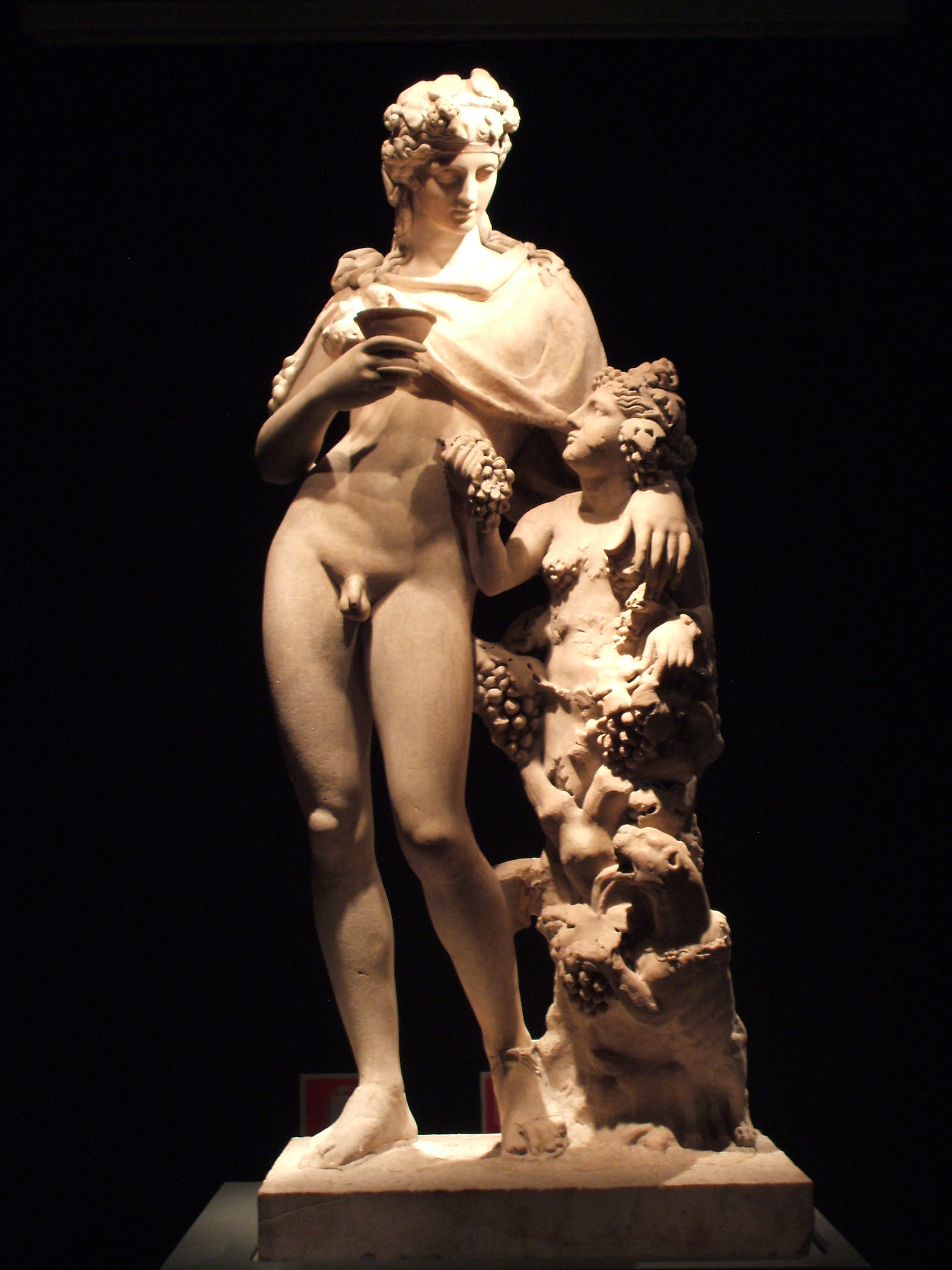 Celebración griega a Dioniso (Izq.). Estatua del Dios Baco romano (Der.).