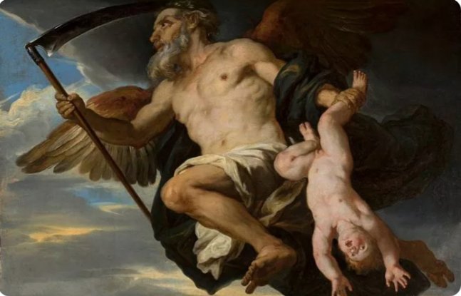 Cronos fue simbolizado como el tiempo y se lo representaba como un hombre anciano con una hoz. Con su reinado surgen las épocas y la división de los ciclos. Por este motivo Cronos estaba también relacionado con las cosechas y las sucesivas etapas que se desarrollan a lo largo del año.