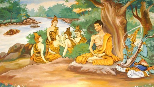 Para ejemplificar lo anterior, podemos recordar la anécdota mediante la cual Buda se iluminó. Siddhartha Gautama, nacido en Nepal y luego de haber vivido los primeros años de su vida en un palacio rodeado de todo tipo de lujos, decide emprender una vida ascética alejado de todo tipo de objetos materiales y apegos. En un momento de su búsqueda y estando muy débil, mientras meditaba debajo de un árbol, pasa un barco y sobre él escucha a un profesor de cítara decirle a su estudiante que el sonido no puede producirse si la cuerda está muy floja, pero si la misma se tensa de más, se cortará y tampoco hará música. La armonía se alcanza con la tensión apropiada, en el justo medio. Luego de escucharlo, Buda se dio cuenta que ninguno de los extremos lo llevarían a la sabiduría.