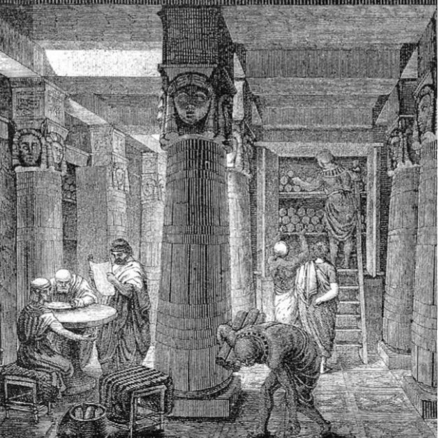 Alrededor del año 280 a. C. en Alejandría y a cargo de Ptolomeo I Sóter, un centro de investigación es erigido con el propósito de disponer lo necesario para que los mejores poetas, escritores y científicos del Mundo Antiguo vivieran y trabajaran: el “museion”. Es de aquí de donde posteriormente toman sus nombres los museos. Estos espacios sagrados eran construidos para que las musas, deidades de las ciencias y las artes habitaran en su interior.
