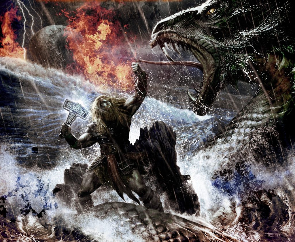 Grandes y poderosos magos, increíblemente viejos, llevan la sabiduría de otros tiempos, por ejemplo, Odín buscará al gigante Mimir para obtener la sabiduría completa y por la cual deberá entregar un ojo. Perversos y versados en la magia, los gigantes, equivalentes a los titanes griegos, serían los principales de los dioses, encabezada esta lucha por Thor. Mientras los jotun simbolizan la quietud, la inercia titánica propia de la materia que se resiste, Thor es el dios del trueno y el rayo, símbolo de la voluntad en práctica. Es la voluntad lo único que puede dominar y vencer a la inercia material, poniendo orden sobre el caos, civilizando aquello que no tiene forma y esto aplica a las culturas humanas y al hombre también.