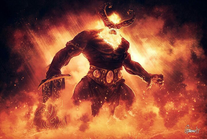 En este mundo ígneo habitan Sutr y los gigantes de fuego, también llamados “los hijos de Muspell”, dios del fuego y padre de las llamas. Como se puede encontrar en el Glosario Teosófico de Helena Blavatsky, “Estos malos hijos del buen Muspel, (…) se juntaron formando un ejército formidable, y libraron la “última batalla” (Ragnarok) (…)”. Estos gigantes de fuego tendrán un rol decisivo en la batalla del fin del mundo en estas tradiciones.