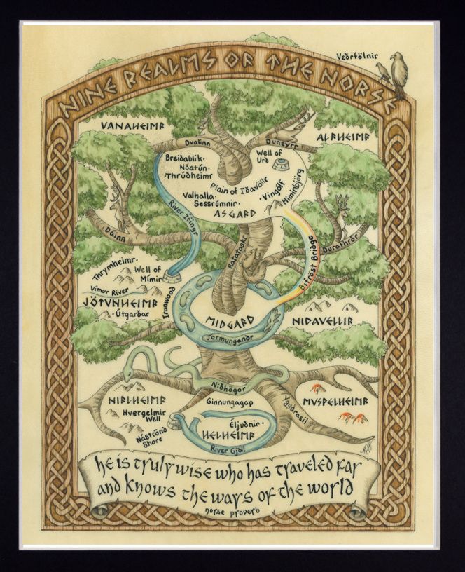 Las tradiciones nórdicas mencionan nueve mundos comprendidos en tres niveles dentro del Yggdrasil; un nivel celeste, una especie de inframundo y, de manera intermedia, un mundo terrestre. Aunque si bien las clasificaciones actuales parecen mostrarlos como lugares separados entre ellos, es posible que algunos de estos mundos estén dentro de otros; o que refieran, no a espacios “geográficos” sino a diferentes estados de conocimiento y conciencia, como comentaremos más adelante.