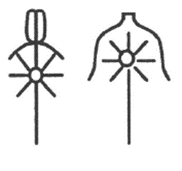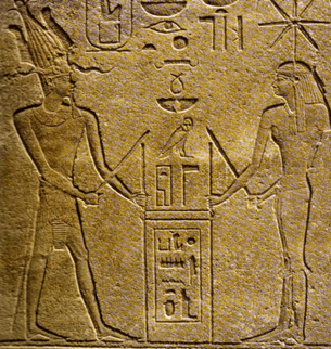 El jeroglífico que representa a la diosa está conformado por una estrella que algunos autores asocian a una roseta de probable origen sumerio, que representaría el poder u orden divino. Sobre ella hay un arco o cartucho, que podría significar la protección del espacio donde la diosa va a trabajar. En unas pocas ocasiones se puede ver sobre ese arco dos plumas.