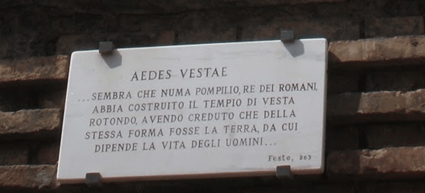 También se dice que el rey Numa, hizo construir el templo de Vesta redondo para imitar la forma de la Tierra, cuyo fuego central representa el hogar de todos los seres humanos. Posteriormente, a este templo circular y relativamente pequeño situado en el foro, se añadió un edificio destinado a ser la Casa de las Vestales.