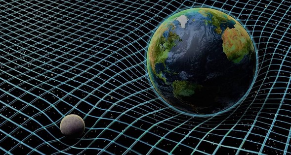 Para adentrarnos en este intrigante tema, es esencial retroceder hasta los albores de la ciencia clásica. En el año 1687, Sir Isaac Newton, un científico, alquimista y astrólogo notable, propuso una teoría en la que el espacio y el tiempo son entidades independientes y separadas. Según él, el espacio es absoluto y determinado, donde todos los objetos se mueven debido a la fuerza de gravedad que poseen, manteniéndolos unidos y en rotación. Sin embargo, a principios del siglo XX, Albert Einstein presentó la teoría de la relatividad, donde el espacio ya no es independiente del tiempo; ambos están interrelacionados. La velocidad de la luz, que viaja a 300,000 km/s, se mantiene como una constante universal. En este modelo, la luz se convierte en una medida del espacio recorrido en un tiempo determinado, y la gravedad se considera como una medida de la masa de los objetos que curvan el espacio-tiempo. Así, la masa de los objetos distorsiona esta red imaginaria de líneas que representa el espacio-tiempo. Por ejemplo, podríamos imaginar a la Tierra y la Luna sostenidas por una red elástica, deformada como en la figura; allí la el satélite terrestre entraría en órbita pues giraría sobre la deformación que la Tierra hace sobre esta red.