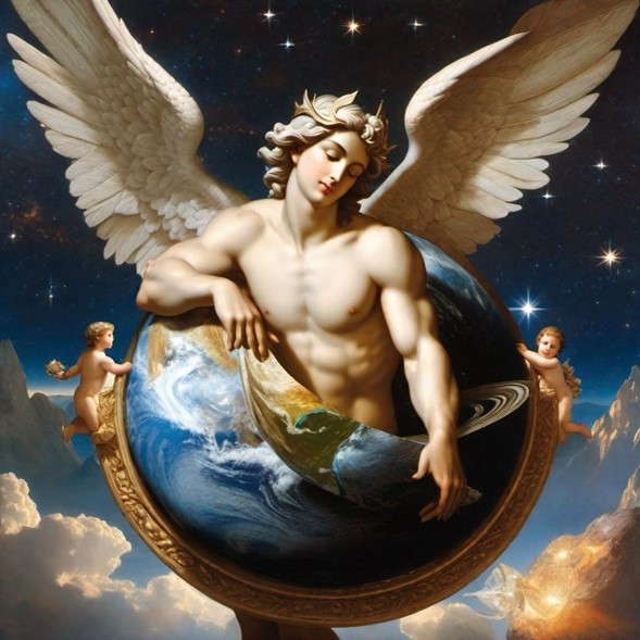 Así, pensando simbólicamente, la gravedad podría ser una manifestación física del Amor Primordial, por ser la fuerza que mantiene a los seres unidos y en movimiento.