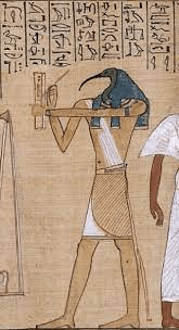 Thot con cabeza de ibis guiando al Alma hacia el Amenti