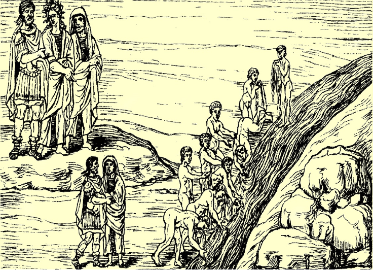 Y luego todas ellas se dirigían a la llanura del olvido, en medio de un calor terrible y sofocante, porque en aquel campo no se veía ni un solo árbol ni nada de lo que la tierra produce. Llegada la tarde, se reunían junto al río de la despreocupación, cuya agua no puede ser contenida en ningún recipiente. Todas venían obligadas a beber una cierta cantidad de esta agua; pero había almas que procedían imprudentemente y, al beber más de la cuenta, perdían en absoluto la memoria. Y ocurrió después, cuando ya las almas se entregaban al sueño y era el tiempo de media noche, que un trueno y un seísmo turbó la calma, llevando de repente a cada una hacia el lugar de su nacimiento y precipitándolas como si fueran estrellas. Pero a Er se le había impedido, que bebiera del agua y, sin saber cómo había sido, encarnó de nuevo en su cuerpo y de pronto, levantando los ojos al cielo, se vio muy de mañana, yacente sobre la pira.