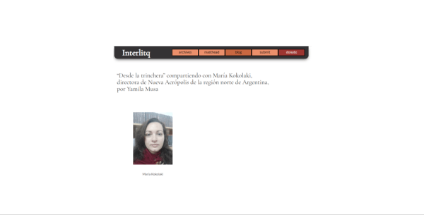 Les compartimos una ENTREVISTA realizada a nuestra directora María Kokolaki que aporta una mirada filosófica a la situación actual.La misma fue realizada el 12 de abril por @yamilamusa para la sección "Desde la trinchera" de la revista internacional Interlitq (http://interlitq.org). Link de la entrevista: http://interlitq.org/blog/2020/04/11/desde-la-trinchera-compartiendo-con-maria-kokolaki-directora-de-nueva-acropolis-de-la-region-norte-de-argentina-por-yamila-musa/?fbclid=IwAR2PALych0Wc9F-d37VNiL1UJn2uRi_PpMRyyzBHasZFj_HbaAKX_quR4QQ 12/04/2020 Entrevistado por Yamila Musa “Desde la trinchera” compartiendo con María Kokolaki, directora... Leer más →
